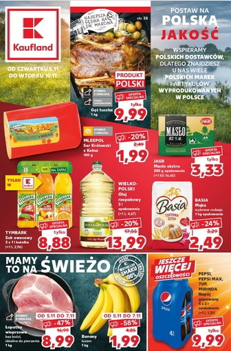 'Postaw na polską jakość' - nowa gazetka promocyjna sieci marketów Kaufland. Polecane promocje z gazetki Kaufland: Ser Królewski z Kolna Mlekpol 100 g - 1,99 zł. Masło ekstra Jagr 200 g - 3,33 zł. Mąka Basia 1 kg -…