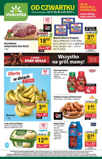 'Od czwartku' - nowa gazetka promocyjna sieci sklepów Stokrotka. Polecane promocje z gazetki Stokrotka: Karkówka wieprzowa bez kości 1 kg - 18,99 zł*. Masło Ekstra Polskie Mlekovita 200 g - 3,99 zł**. Ketchup Pudliszki 450 g - 4,99 zł.…