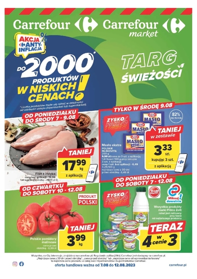 {loadposition linkCarrefour} 'Do 2000 produktów w niskich cenach! Targ świeżości. Akcja anty-inflacja' - nowa gazetka promocyjna sieci marketów Carrefour. Polecane promocje z gazetki Carrefour: Filet z indyka 1 kg - 17,99 zł*. Masło Ekstra Polskie Mlekovita 200 g -…
