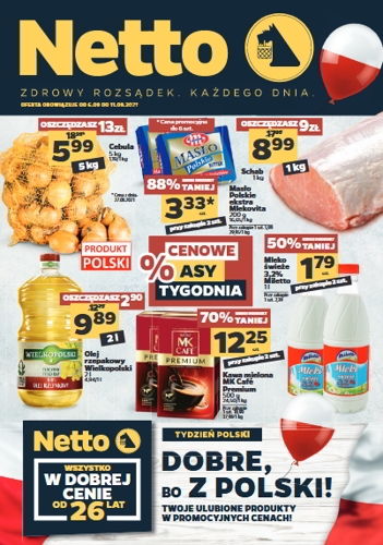 {loadposition linkNetto3} 'Cenowe asy tygodnia' - nowa gazetka promocyjna sieci sklepów Netto. Polecane promocje z gazetki Netto: Cebula 5 kg - 14,49 zł. Masło Ekstra Polskie Mlekovita 2x200 g - 6,66 zł. Olej rzepakowy Wielkopolski 2 L - 9,89…
