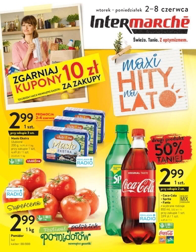 {loadposition linkIntermarche} 'Maxi hity na lato' - nowa gazetka promocyjna sieci sklepów Intermarche Polecane promocje z gazetki Intermarche: Masło Ekstra Ulubione 3x200 g - 8,97 zł. Pomidory 1 kg - 2,99 zł. Pasztet Drop 2x140 g - 2,80…