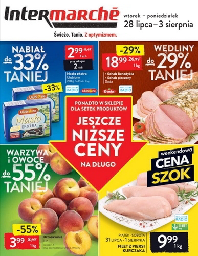 {loadposition linkIntermarche2} 'Jeszcze niższe ceny na długo dla setek produktów' - nowa gazetka promocyjna sieci sklepów Intermarche Polecane promocje z gazetki Intermarche: Masło ekstra Ulubione 2x200 g - 5,98 zł. Schab Benedytka Duda 1 kg - 18,99…