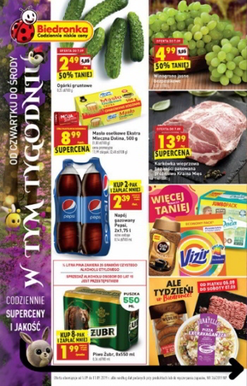 'W tym tygodniu' - nowa gazetka promocyjna sieci sklepów Biedronka. Polecane promocje z gazetki sieci Biedronka: Ogórki gruntowe 1 kg - 2,49 zł. Winogrono jasne bezpestkowe 1 kg - 4,99 zł. Masło osełkowe ekstra Mleczna Dolina 500…