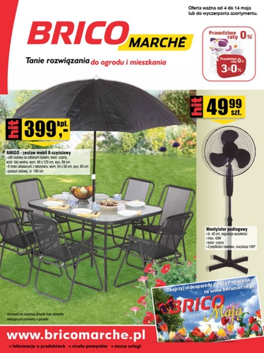 {loadposition linkBricomarche} Nowa gazetka promocyjna Bricomarche. Polecane promocje z gazetki Bricomarche: Zestaw mebli Amigo - 399 zł. Wentylator podłogowy - 49,99 zł. Materac flokowany Double - 39,99 zł. Oferta ważna od 4.05 do 14.05 lub do wyczerpania asortymentu.