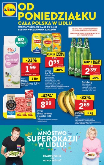 {loadposition linkLidl1} Nowa gazetka promocyjna sieci sklepów Lidl - "Od poniedziałku cała Polska w Lidlu". Polecane promocje z gazetki sklepów Lidl: Mleko bez laktozy Pilos 1 L - 1,99 zł. Mięso mielone z łopatki Rzeźnik 1 kg -…