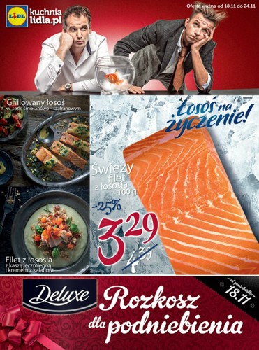 {loadposition linkLidl} Nowa gazetka promocyjna Lidl - "Łosoś na życzenie". Polecane promocje z gazetki Lidl: Świeży filet z łososia 100 g - 3,29 zł. Mięso mielone z szynki 500 g - 6,79 zł. Świeży indyk 1 kg - 9,99…