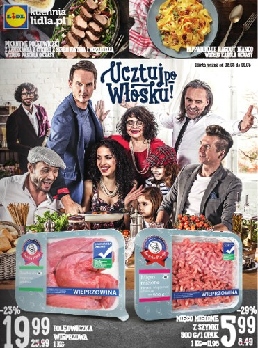 {loadposition linkLidl} Nowa gazetka promocyjna Lidl - "Ucztuj po włosku!". Polecane promocje z gazetki Lidl: Polędwiczka wieprzowa 1 kg - 19,99 zł. Mięso mielone z szynki 500 g - 5,99 zł. Rurki makaronowe Cannelloni 250 g - 3,49 zł.…