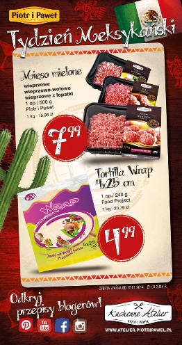 Nowa gazetka promocyjna sieci sklepów Piotr i Paweł - "Tydzień Meksykański". Polecane promocje z gazetki Piotr i Paweł: Mięso mielone 500 g - 7,99 zł. Tortilla Wrap 4x25 cm - 4,99 zł. Oferta ważna od 15.01 do…