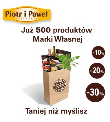 Nowa gazetka promocyjna sieci sklepów Piotr i Paweł - "Marka własna do -30% taniej!". Polecane promocje z gazetki Piotr i Paweł: Miód wielokwiatowy 500 g - 13,29 zł. Papier do pieczenia - 2,79 zł. Folia aluminiowa - 2,02…