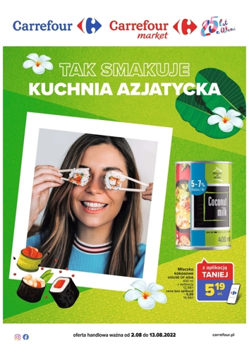 {loadposition linkCarrefour2} 'Kuchnia azjatycka - zorientuj się w orientalnych smakach!' - nowa gazetka promocyjna sieci marketów Carrefour. Polecane promocje z gazetki Carrefour: Mleczko kokosowe House of Asia 400 ml - 5,39 zł. Pitaja czerwona 1 kg - 18,99 zł.…