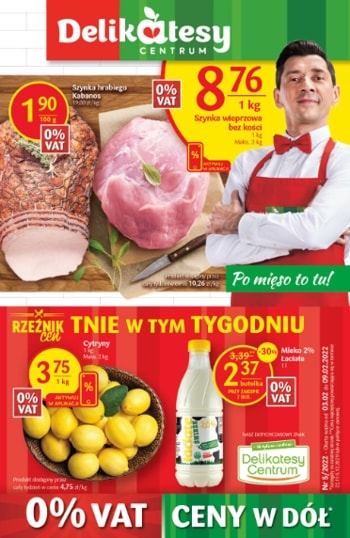 {loadposition linkDelikatesyCentrum} '0% VAT, ceny w dół' - nowa gazetka promocyjna Delikatesów Centrum. Polecane promocje z gazetki Delikatesów Centrum: Szynka wieprzowa bez kości 1 kg - 8,76 zł*. Cytryny 1 kg - 3,75 zł**. Mleko Łaciate 2x1 L -…