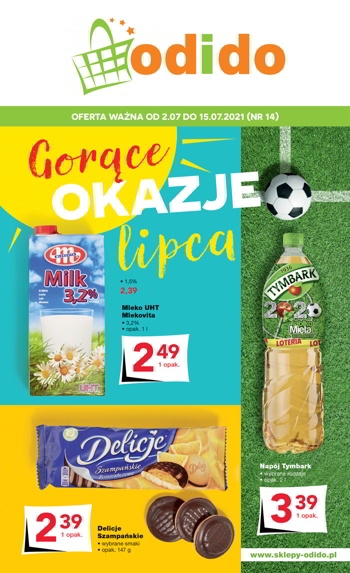 {loadposition linkOdido} 'Gorące okazje lipca' - nowa gazetka promocyjna sklepów Odido. Polecane promocje z gazetki Odido: Mleko Mlekovita 1 L - 2,49 zł. Delicje Szampańskie 147 g - 2,39 zł. Napój Tymbark 2 L - 3,39 zł. …