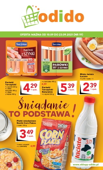 {loadposition linkOdido} 'Śniadanie to podstawa!' - nowa gazetka promocyjna sklepów Odido. Polecane promocje z gazetki Odido: Parówki Tarczyński różne rodzaje - 4,29 zł. Mleko Świeże Łaciate 1 L - 2,39 zł. Płatki śniadaniowe Nestle Corn Flakes 250 g -…
