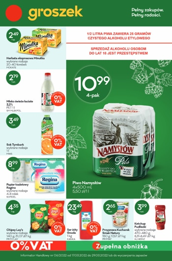 {loadposition linkGroszek} 'Zupełna obniżka' - nowa gazetka promocyjna sieci sklepów Groszek. Polecane promocje z gazetki Groszek: Piwo Namysłów 4x500 ml - 10,99 zł. Herbata ekspresowa Minutka 40 torebek - 2,49 zł. Mleko Świeże Łaciate 1 L - 2,79 zł.…