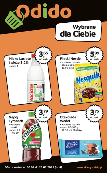 {loadposition linkOdido} 'Wybrane dla Ciebie' - nowa gazetka promocyjna sklepów Odido. Polecane promocje z gazetki Odido: Mleko świeże Łaciate 1 L - 3,65 zł. Płatki Nestle wybrane rodzaje 250 g - 5,99 zł. Napój Tymbark 2 L - 3,79…