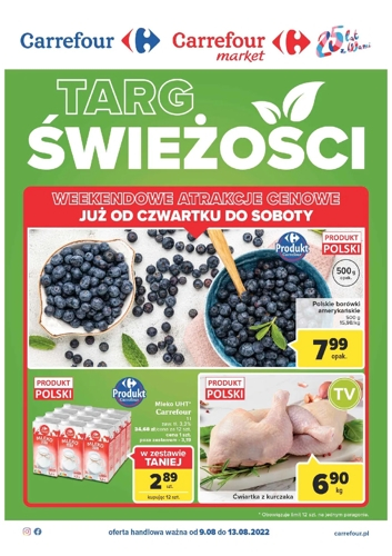 {loadposition linkCarrefour} 'Targ świeżości' - nowa gazetka promocyjna sieci marketów Carrefour. Polecane promocje z gazetki Carrefour: Polskie borówki amerykańskie 500 g - 7,99 zł. Mleko UHT Carrefour 12x1 L - 34,68 zł. Ćwiartka z kurczaka 1 kg - 6,90…