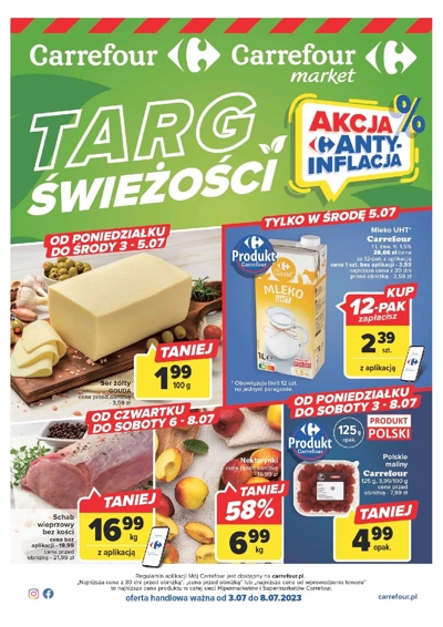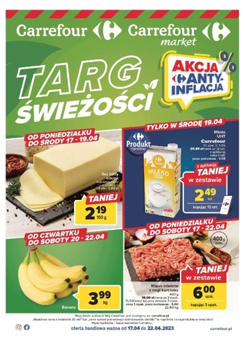 {loadposition linkCarrefour8} 'Targ świeżości. Akcja anty-inflacja' - nowa gazetka promocyjna sieci marketów Carrefour. Polecane promocje z gazetki Carrefour: Ser żółty Gouda 100 g - 2,19 zł*. Mleko UHT Carrefour 1 L - 2,49 zł**. Banany 1 kg - 3,99…