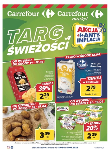 {loadposition linkCarrefour} 'Targ świeżości. Akcja anty-inflacja' - nowa gazetka promocyjna sieci marketów Carrefour. Polecane promocje z gazetki Carrefour: Ser żółty Sokół Mlekovita 100 g - 2,99 zł*. Mleko UHT Carrefour 1 L - 2,79 zł**. Ziemniaki wczesne 1 kg…
