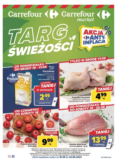 {loadposition linkCarrefour} 'Targ świeżości. Akcja anty-inflacja' - nowa gazetka promocyjna sieci marketów Carrefour. Polecane promocje z gazetki Carrefour: Mleko UHT Carrefour 1 L - 2,49 zł*. Ćwiartka z kurczaka 1 kg - 4,99 zł**. Polskie pomidory malinowe 1 kg…