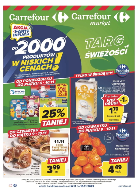 {loadposition linkCarrefour} 'Targ świeżości. Akcja anty-inflacja' - nowa gazetka promocyjna sieci marketów Carrefour. Polecane promocje z gazetki Carrefour: Mleko UHT Carrefour 1 L - 2,49 zł*. Masło Ekstra Polskie Mlekovita 200 g - 3,49 zł**. Polskie ziemniaki wczesne 1…