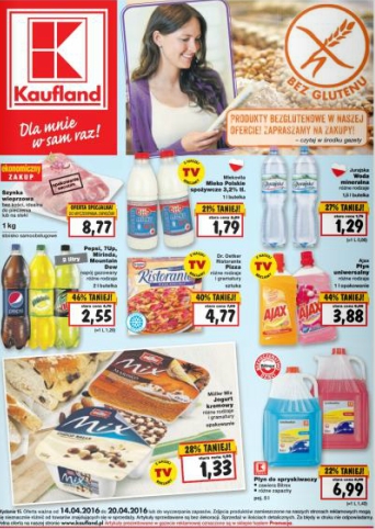 {loadposition linkKaufland} Nowa gazetka promocyjna marketu Kaufland. Polecane promocje z gazetki Kaufland: Szynka wieprzowa bez kości 1 kg - 8,77 zł. Mleko Polskie Mlekovita 1 L - 1,79 zł. Płyn uniwersalny Ajax 1 L - 3,88 zł. Oferta…