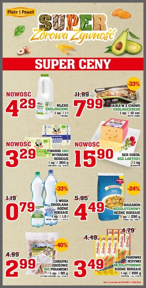 Nowa gazetka promocyjna sieci sklepów Piotr i Paweł - "Super zdrowa żywność". Polecane promocje z gazetki Piotr i Paweł: Mleko ekologiczne Piątnica 1 L - 4,29 zł. Jaja z chowu ekologicznego klasa M 10 sztuk - 7,99 zł.…