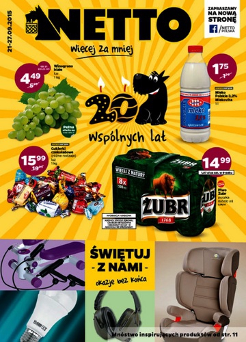 {loadposition linkNetto} Nowa gazetka promocyjna Netto - "20 wspólnych lat". Polecane promocje z gazetki Netto: Winogrona białe 1 kg - 4,49 zł. Mleko Polskie Mlekovita 1 L - 1,75 zł. Cukierki czekoladowe 1 kg - 15,99 zł. …