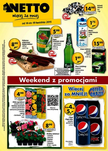 {loadposition linkNetto} Nowa gazetka promocyjna Netto - "Weekend z promocjami". Polecane promocje z gazetki Netto: Krówki Wawel 1 kg - 14,99 zł. Mleko Hula Krasula 1 L - 1,75 zł. Piwo Carlsberg 500 ml - 1,89 zł. …