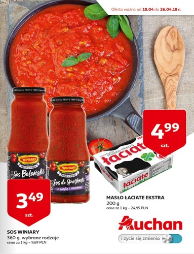 {loadposition linkAuchan} Nowa gazetka promocyjna sieci marketów Auchan. Polecane promocje z gazetki Auchan: Sos Winiary 360 g - 3,49 zł. Masło Ekstra Łaciate 200 g - 4,99 zł. Mleko świeże 1 L - 1,99 zł. Zakupy…