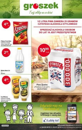 {loadposition linkGroszek} Nowa gazetka promocyjna sieci sklepów Groszek. Polecane promocje z gazetki Groszek: Chipsy Crunchips 140 g - 4,29 zł. Piwo Żywiec 4x500 ml - 10,99 zł. Mleko Białe 1 L - 2,09 zł. …