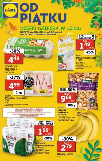 {loadposition linkLidl2} 'Od piątku Dzień Dziecka w Lidlu' - nowa żółta gazetka promocyjna sieci sklepów Lidl. Polecane promocje z gazetki sklepów Lidl: Jaja klasa L 10 Świeżych Jaj - 4,49 zł. Polskie mleko Pilos 12x1 L - 17,88…