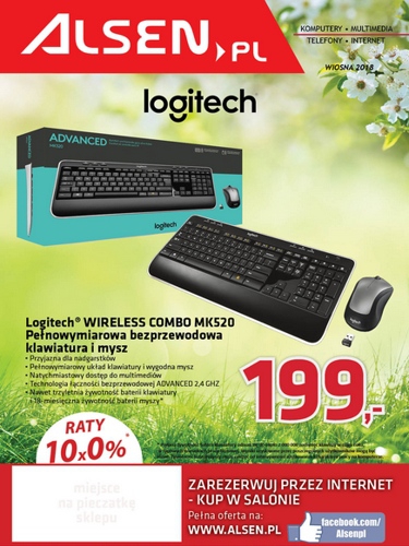 {loadposition linkAlsen} Nowa gazetka promocyjna sieci sklepów Alsen. Polecane promocje z gazetki Alsen: Pełnowymiarowa bezprzewodowa klawiatura i mysz Logitech Wireless Combo MK520 - 199 zł. Monitor 24 cale Samsung Curved C24F390FHUX - 635 zł. Zestaw głośników Logitech Z333 Speaker…
