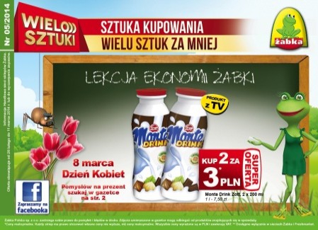 Nowa gazetka promocyjna sieci sklepów Żabka - "Wielosztuki - sztuka kupowania wielu sztuk za mniej". Polecane promocje z gazetki Żabka: Monte Drink Zott 200 ml 2 sztuki - 3 zł. Bombonierka Merci 250 g - 9,99 zł. Pizza…