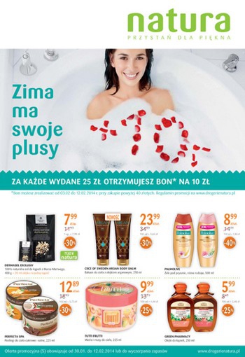 {loadposition linkNatura} Nowa gazetka promocyjna Drogerii Natura - "Zima ma swoje plusy". Polecane promocje z gazetki Drogerii Natura: Żel pod prysznic Palmolive 500 ml - 8,99 zł. Mydło w płynie Luksja 400 ml - 3,99 zł. Farba do włosów…