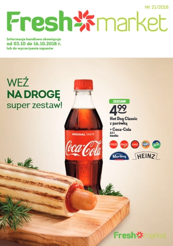 {loadposition linkFreshmarket} 'Weź na drogę super zestaw!' - nowa gazetka promocyjna sieci sklepów Freshmarket. Polecane promocje z gazetki Freshmarket: Hot Dog Classic z parówką + Coca-Cola 500 ml - 4,99 zł. Wafelek Góralki 50 g - 1,29 zł.…