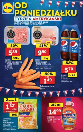 {loadposition linkLidl1} Nowa gazetka promocyjna sieci sklepów Lidl - "Od poniedziałku Tydzień Amerykański". Polecane promocje z gazetki sklepów Lidl: Płatki kukurydziane Crownfield 2x500 g - 2,64 zł. Syrop klonowy Mcennedy 250 ml - 14,99 zł. Napój gazowany…