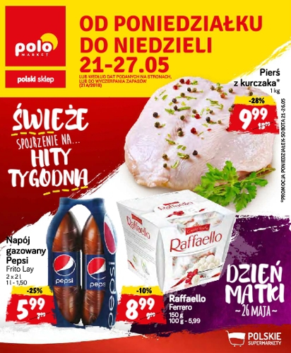 {loadposition linkPoloMarket} 'Świeże spojrzenie na... hity tygodnia' - nowa gazetka promocyjna sieci sklepów Polo Market. Polecane promocje z gazetki Polo Market: Pierś z kurczaka 1 kg - 9,99 zł. Napój gazowany Pepsi 2x2 L - 5,99 zł. Raffaello…