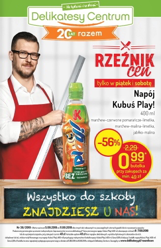 {loadposition linkDelikatesyCentrum} 'Rzeźnik cen' - nowa gazetka promocyjna Delikatesów Centrum. Polecane promocje z gazetki Delikatesów Centrum: Napój Kubuś Play 400 ml - 0,99 zł*. Zeszyt A5 Herlitz 60 kartek - 1,99 zł. Plecak Semi Line - 15,99 zł.…