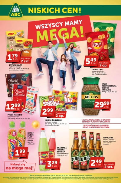 {loadposition linkABC} 'Wszyscy mamy mega!' - nowa gazetka promocyjna sieci sklepów ABC. Polecane promocje z gazetki ABC: Śmiejżelki Nimm2 wybrane rodzaje - 12,99 zł*. Napój Kubuś Play 400 ml - 1,99 zł. Oranżada Hellena z sokiem 1,25 L -…