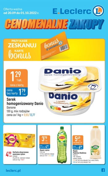 {loadposition linkEleclerc} 'Cenomenalne zakupy' - nowa gazetka promocyjna sieci handlowej E.Leclerc. Polecane promocje z gazetki E.Leclerc: Herbata ekspresowa owocowa Lipton 20 torebek - 4,99 zł. Napój Lipton 1,5 L - 3,79 zł*. Napój Piątnica Roślinna 1 L - 5,49…