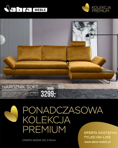 {loadposition linkAbra2} 'Ponadczasowa Kolekcja Premium' - nowa gazetka promocyjna sieci sklepów Abra Meble. Polecane promocje z gazetki Abra Meble: Narożnik Soft - 3299 zł. Narożnik Bueno - 3699 zł. Narożnik Collin - 2999 zł. Oferta ważna on-line…