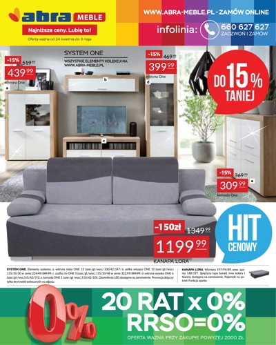 {loadposition linkAbra} Nowa oferta promocyjna sieci sklepów Abra Meble. Polecane promocje z gazetki Abra Meble: Kanapa Lora - 1199,99 zł. Narożnik Colin - 1249,99 zł. Narożnik Tybet - 2599,99 zł. Oferta ważna od piątku…