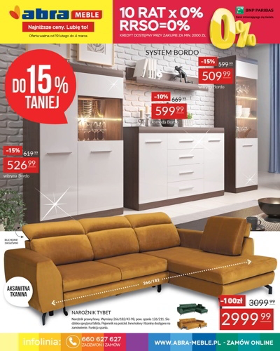 Nowa gazetka promocyjna sieci sklepów Abra Meble. Polecane promocje z gazetki Abra Meble: Witryna Bordo - 526,99 zł. Narożnik Tybet - 2999,99 zł. Łóżko Trio - 1599,99 zł. Oferta ważna od piątku 19.02 do czwartku 4.03 lub…