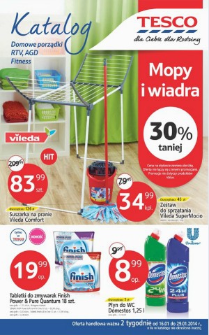 Nowy katalog Tesco - Domowe porządki, RTV, AGD, Fitness. Polecane promocje z katalogu Tesco: Zestaw do sprzątania Vileda SuperMocio - 34,99 zł. Telewizor LED 32" Blaupunkt BLA-32/112JLED HDR - 749 zł. Notebook Toshiba C850-1C4 - 1699 zł. …