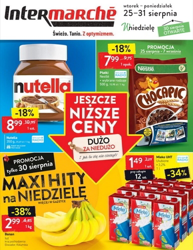{loadposition linkIntermarche} 'Jeszcze niższe ceny. Dużo za niedużo. I jak tu się nie cieszyć!' - nowa gazetka promocyjna sieci sklepów Intermarche Polecane promocje z gazetki Intermarche: Nutella 350 g - 8,99 zł. Płatki Nestle wybrane rodzaje 500 g…