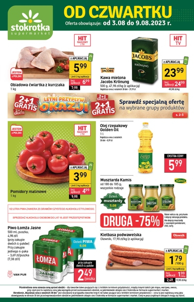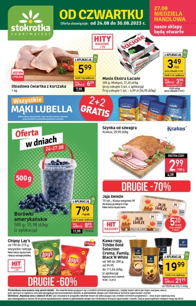 Nowa gazetka promocyjna sieci sklepów Stokrotka. Polecane promocje z gazetki Stokrotka: Obiadowa ćwiartka z kurczaka 1 kg - 5,99 zł*. Borówki amerykańskie 500 g - 12,99 zł**. Olej rzepakowy Polski 1 L - 1,39 zł***. * - cena…