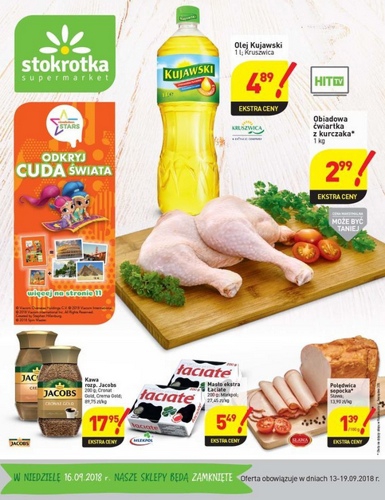 'Odkryj cuda świata' - nowa gazetka promocyjna sieci sklepów Stokrotka. Polecane promocje z gazetki Stokrotka: Olej Kujawski 1 L - 4,89 zł. Obiadowa ćwiartka z kurczaka 1 kg - 2,99 zł. Polędwica sopocka Sława 100 g - 1,39…