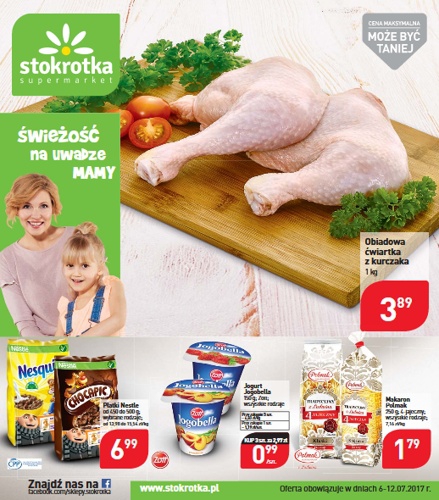 Nowa gazetka promocyjna sieci handlowej Stokrotka - "Świeżość na uwadze mamy". Polecane promocje z gazetki Stokrotka: Obiadowa ćwiartka z kurczaka 1 kg - 3,89 zł. Płatki Nestle różne rodzaje - 6,99 zł. Makaron Polmak 250 g -…