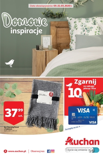 {loadposition linkAuchan} 'Domowe inspiracje' - nowa gazetka promocyjna sieci marketów Auchan. Polecane promocje z gazetki Auchan: Koc Charming Forest z frędzlami 125x150 cm - 37,99 zł. Bieżnik 40x180 cm - 11,99 zł. Obrus 150x150 cm - 39,99 zł.…