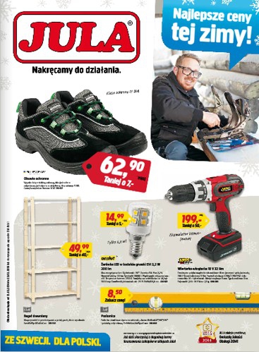 {loadposition linkJula} Nowa gazetka promocyjna sieci handlowej Jula - "Najlepsze ceny tej zimy!". Polecane promocje z gazetki Jula: Obuwie ochronne - 62,90 zł. Regał drewniany - 49,99 zł. Poziomica - 8,50 zł. Oferta ważna od 12.02 do 23.02…